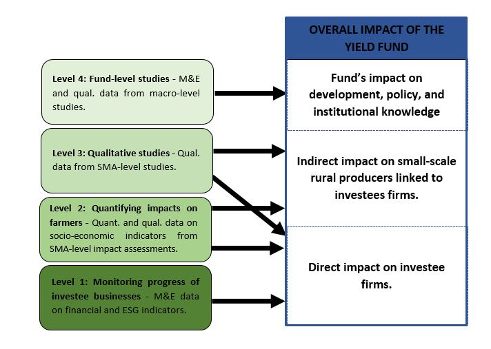 Sistemin ikinci seviyesi, Fon'un yatırım yapılan işletmelerle bağlantılı düşük gelirli çiftçiler üzerindeki etkilerini ele alacaktır. İşletmeler üzerindeki etkilerin izlenmesi, etki fonları için yaygın olsa da, işle bağlantılı kişiler üzerindeki etkileri titizlikle ölçmeye yönelik girişimler nadirdir. Bu, bir kişinin tanımlanmasını gerektirdiği için karmaşıktır. kontrol grubu Yatırımın neden olduğu etkileri diğer etkilerden ayırmak için beklenen yararlanıcıları karşılaştırmak için.