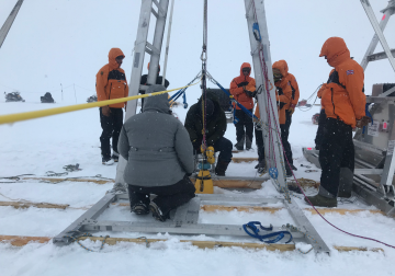 ABD Ulusal Bilim Vakfı-desteklenen bilim adamı Britney Schmidt Cornell Üniversitesi ve bilim adamlarından ve mühendislerden oluşan bir ekip, adı verilen bir robotu konuşlandırdı. Buz yüzgeci 600 metre derinliğinde (1.969 fit derinliğinde) bir sondaj deliğinden.
